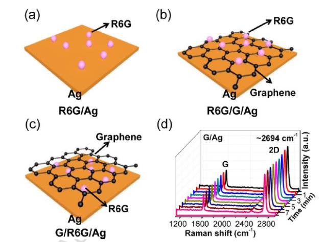 图5单层石墨烯、金属银和罗丹明协同增强SERS的稳定性[9]